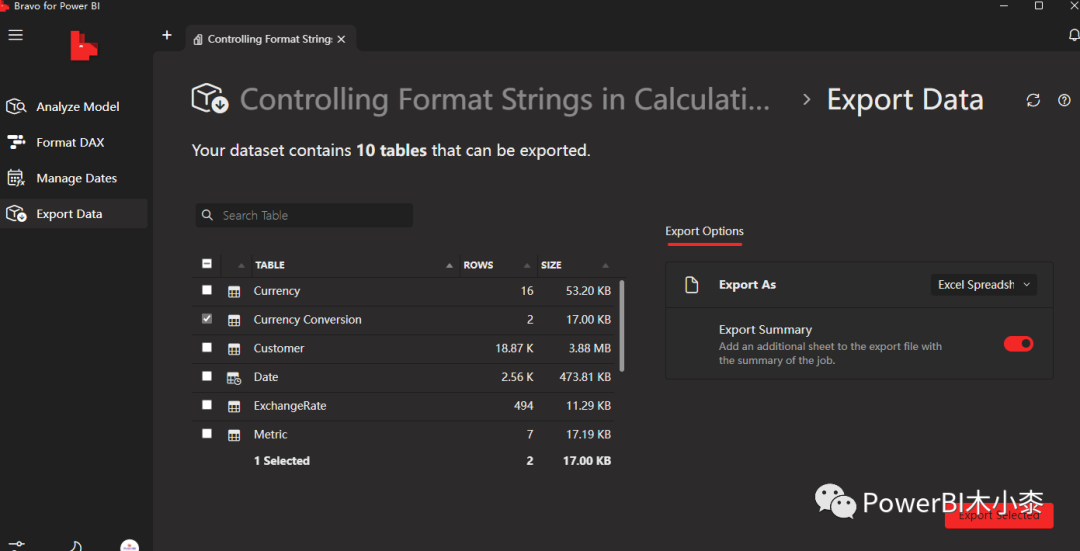 这大概是很多业务人员的需求了,他们更愿意在Excel中来二次处理数据,而PowerBI中导出数据是有行数限制的,很多外部工具都有导出数据的功能,其中我最喜欢的是Dax Studio,不止是可以全量的导出为csv,也可以导出数据到SQL数据库,但是Bravo的导出数据功能无疑更加简单直观,没有太复杂地功能,只满足最基本的需求。另外如果针对于云端报表也可以使用python连接数据集来处理(使用Python连接PowerBI数据集)。